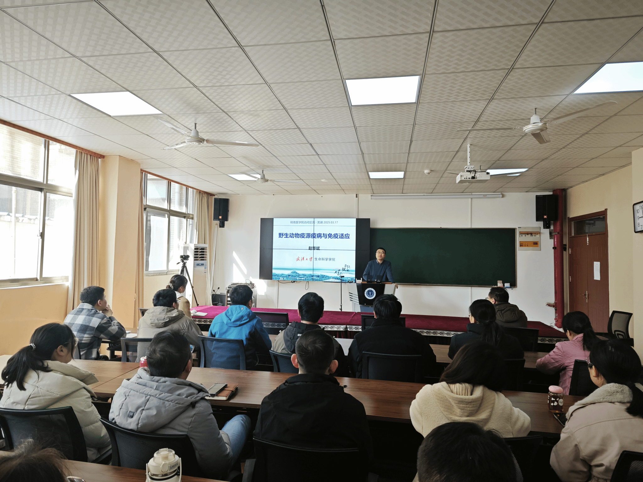 本次讲座以“野生动物疫源疫病与免疫适应”为主题,赵华斌以蝙蝠为切入点,系统讲解了全球蝙蝠种类多样性及其独特的生物学特性。他指出,蝙蝠作为自然界中重要的病毒宿主,与SARS、埃博拉、新冠病毒等重大疫病的传播存在关联,但其自身却能通过免疫适应机制与病毒长期共存。赵华斌通过剖析蝙蝠免疫系统的抗病毒机制,揭示了野生动物在疫病传播中的复杂角色,并强调“保护野生动物栖息地、科学监测疫源”对人类公共卫生安全的重要意义。同时,赵华斌介绍了其科研团队的最新研究成果,以一篇具体文章为例,详细地讲述了高质量论文的的撰写与投稿策略,生动的案例与前沿研究成果引发了在场师生的热烈讨论。报告结束后,赵华斌与公司科研人员进行了深入交流,详细解答了公司教师在科研工作中遇到的困惑,针对这些困惑,他结合个人科研经验进行了详细指导。