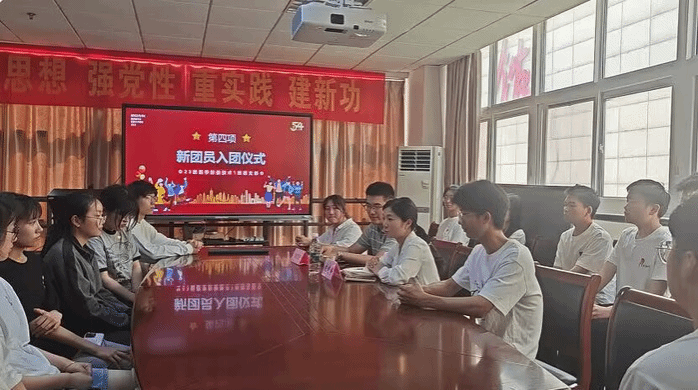 本次主题团日活动分为齐唱国歌团歌、深入学习五四寄语精神、团员宣誓、学习心得分享等环节。