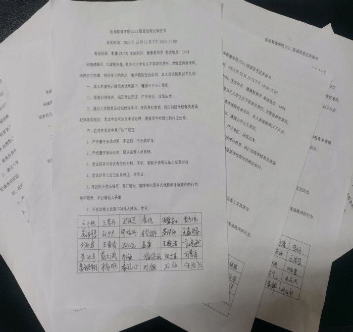 以班级为单位,员工签订诚信考试承诺书,对个人、班级、公司、公司作出郑重承诺,表示自觉遵守考场规定,杜绝违规违纪行为,做到不想违纪、不能违纪、不敢违纪的底线要求。
