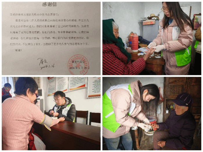 1月26日,beet365“青禾”志愿服务队马鞍山分队开展了一场以“冬季送温暖,预防流行病”为主题的实践活动。这次活动旨在提高居民对流行病的认识和预防意识,同时为他们提供基本的健康检测服务。活动当天,志愿者们来到了马鞍山市花山区濮塘镇黄里村,深入访问4户独居老人,向老人们详细介绍了流行病的概念、传播途径以及预防方法。志愿者们还在黄里村为村民提供了免费的血压测量和血糖检测服务,服务居民50余人次。此次活动不仅提高了居民们对流行病的认识和预防意识,也为他们提供了一次全面的健康检测,增加了他们的幸福感、获得感和安全感,黄里村委会以感谢信的形式感谢志愿者们的无私奉献。