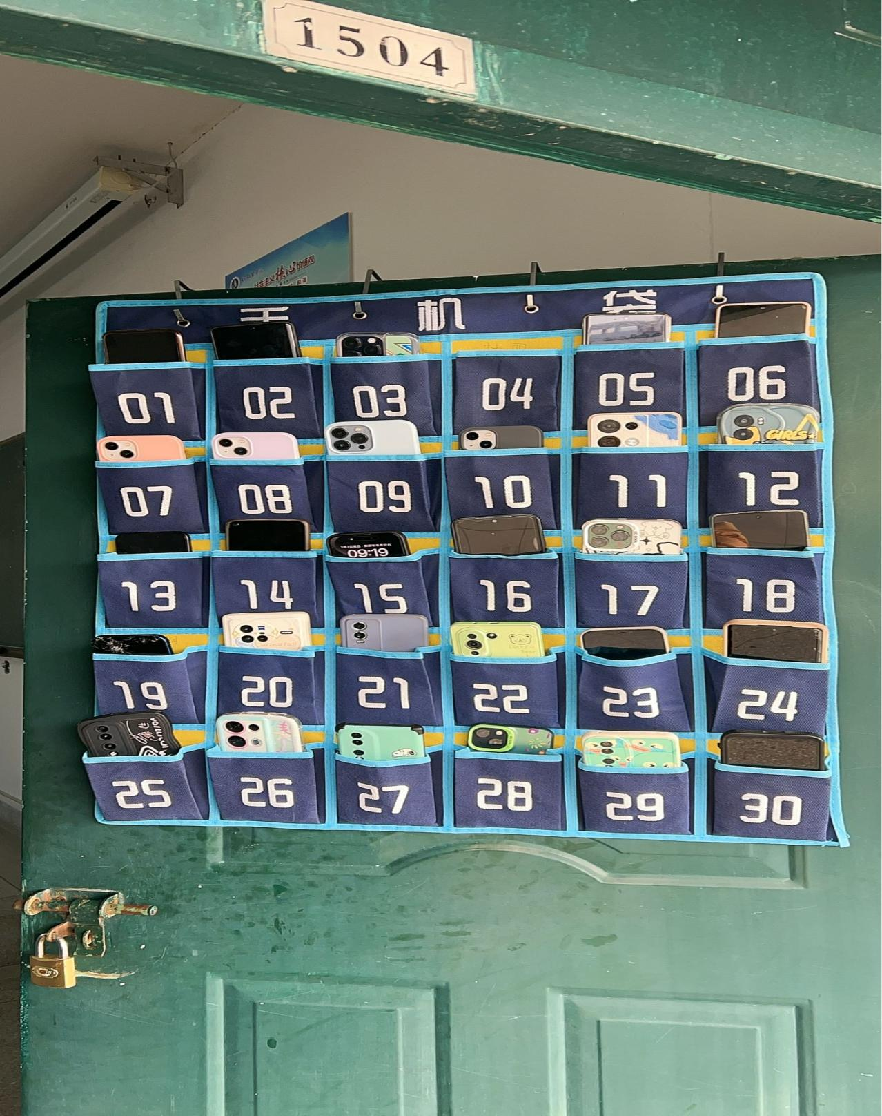 为了营造良好的考风考纪,严格进行无手机考场布置,考前所有同学将手机上交放置于手机袋,考场秩序井然,考试工作有条不紊地进行。