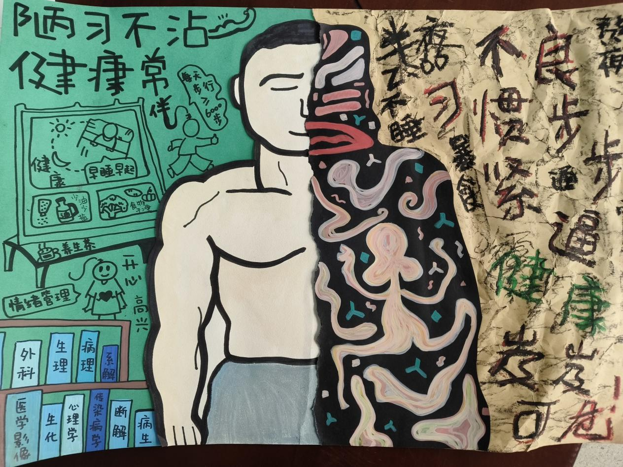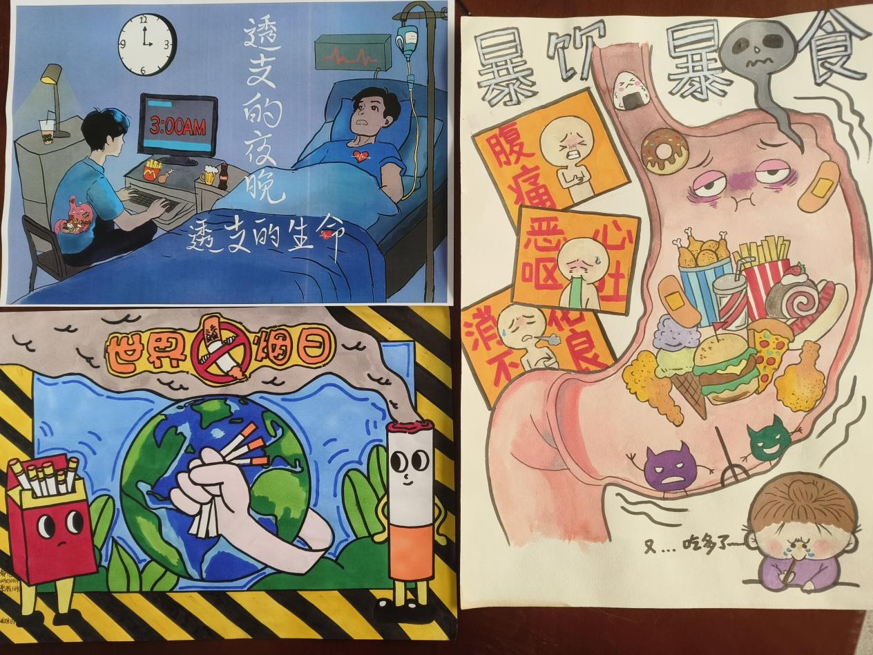 同时,公司还举办了健康绘画活动,形式包括漫画、简笔画、警示海报等。同学们现场作画,简单生动的画面传达出老员工对于身体健康的关注与深刻理解,同时也提醒更多身边的同学重视生活作息与习惯。