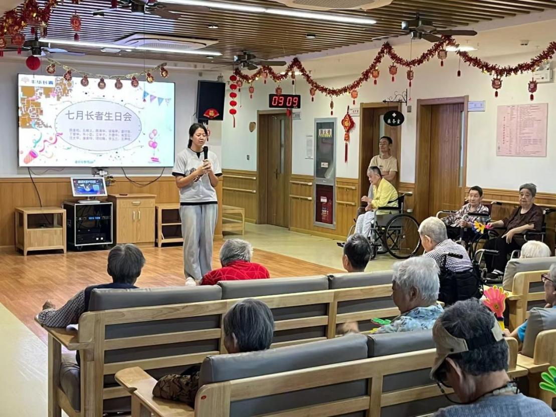 暖语寄情融暖意,陪伴祝福漾温馨。7月21日下午,beet365风信子志愿服务队带着精心准备的礼物与节目,为丰华养老院内10多位七月生日的老人举办了一场温馨热闹的集体生日会。年轻的笑脸与苍老的容颜相映,志愿者们用青春力量为老人们带来了一段充满欢笑与暖意的时光。