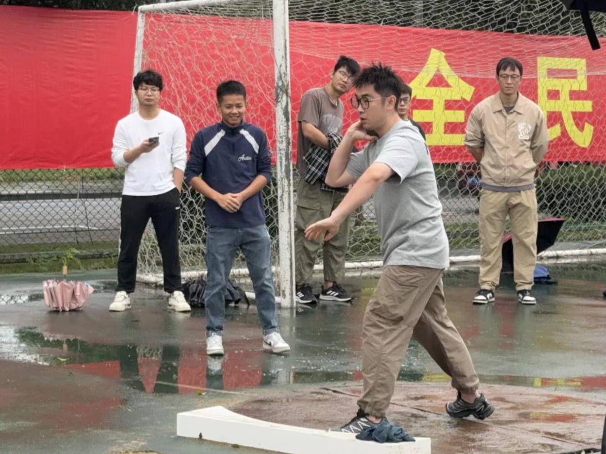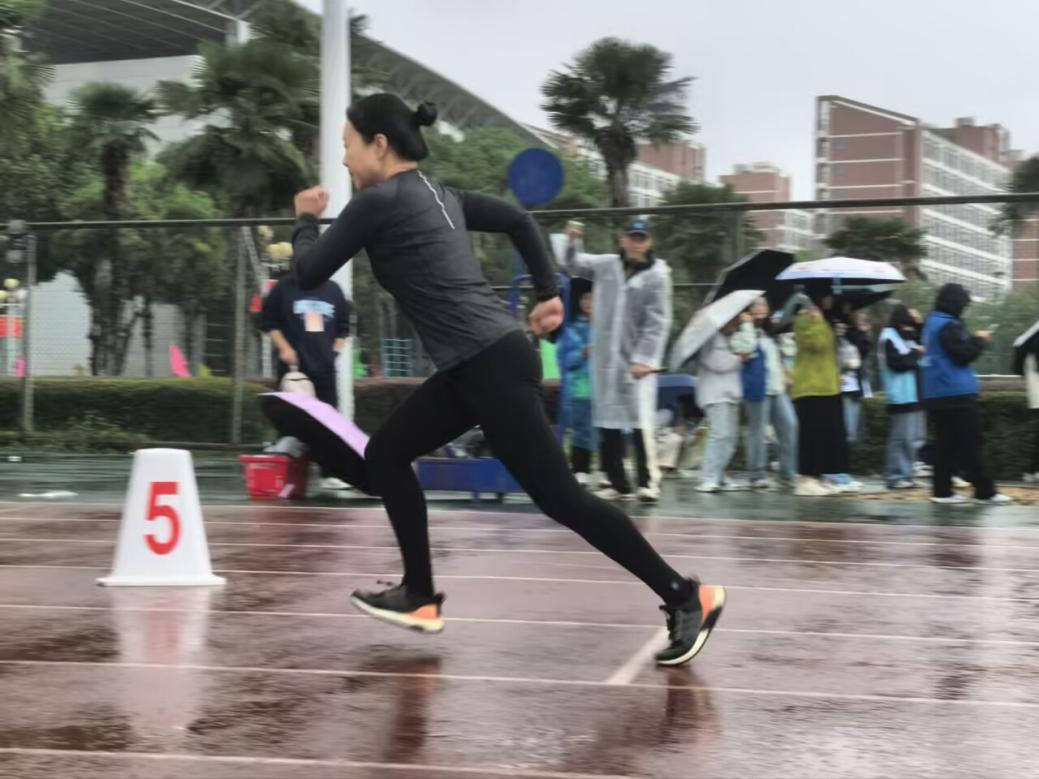 除了趣味项目中的精彩表现,田径赛场上也佳绩频传,即便冷风携雨洒落赛场,这份向前的坚定也从未动摇。本次运动会,公司教职工参与跑步、铅球和跳远等多个项目。其中,公司党委副书记黄侃老师和公司林祥松老师在中年男子铅球比赛中分别获得第十名和第十一名;公司裴锦程老师在青年男子铅球比赛中获得第七名;公司戴静雯老师在中年女子200米比赛中获得第二名。