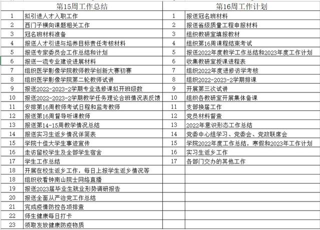 2022/2023-1学期第16周工作安排
