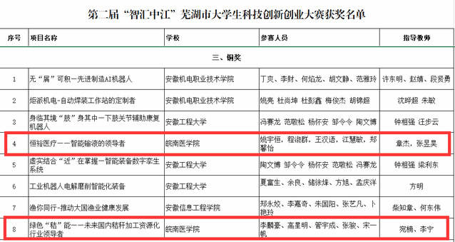 热烈祝贺公司教师指导和员工参赛作品,荣获第二届“智汇中江”芜湖市老员工科技创新创业大赛铜奖2项!张昱昊等四位老师荣获优秀指导老师奖。
