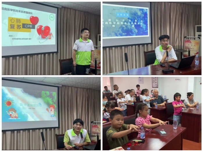 7月30日,“青禾”志愿队来到马鞍山市雨山区永泰社区开展“急救宣讲医路陪伴”主题活动。队员们分别就心肺复苏、海姆立克急救法、防暑知识、七步洗手法四个专题为家长和孩子进行讲解。活动中还设置了有奖竞答环节,小朋友们积极参与,现场气氛高涨。通过寓教于乐的形式,让家长和小朋友们掌握急救和安全防护知识。
