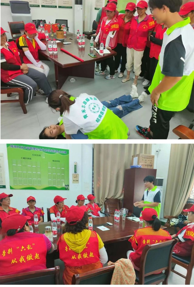 急救知识科普,维系生命安康。8月4日,beet365“青禾”志愿服务队宣城分队与宣城市公安局联合,在宣州区建设科技大厦面向文明督导员开展“学急救知识,护生命安全”为主题的社会实践活动。志愿者开展有关意外伤害紧急处理、心肺复苏、海姆立克急救等知识的宣讲和示范操作。本次活动让参与者们初步掌握了急救、自救、互救的基本技能知识,有效提升了督导员们在意外伤害发生时的自救互救能力。