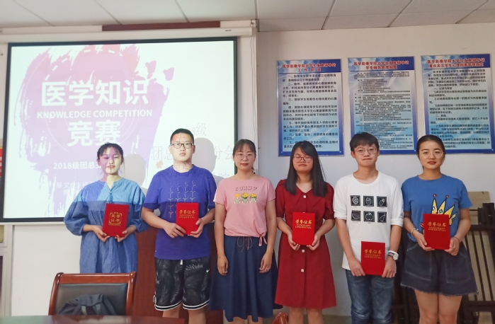 本次比赛以专业课程知识点为考查内容,2018级医学影像学、生物医学工程专业各班级共推荐10名选手参赛,题目来源于各专业本学期的专业课程。各组选手依次上台答题,充分运用自己的个人优势和场外求助,现场气氛紧张热烈。经过激烈角逐,周修娟同学获得一等奖,吴惠琳等同学获得二等奖,韩保凤等同学获得三等奖。活动最后,徐梦琪激励同学们合理安排各门课程的复习时间,多与同学交流复习方法,以积极的心态迎接期末考试。