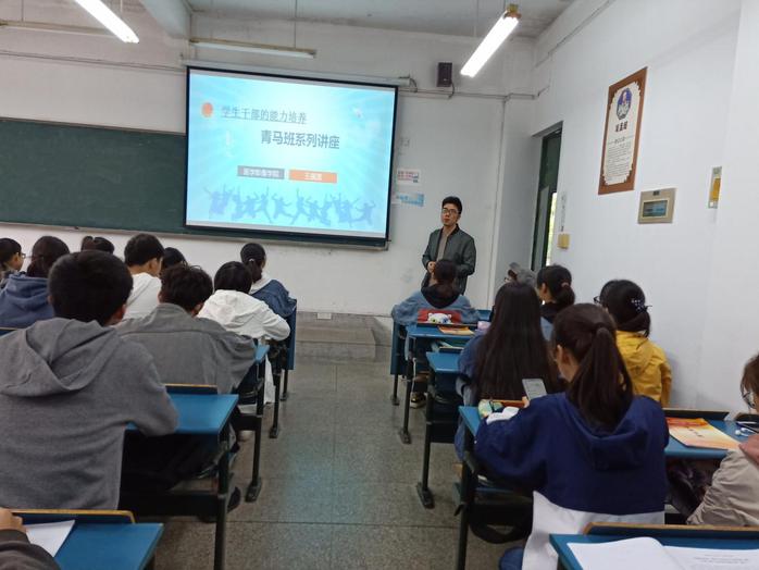 讲座开始之前,全体同学起立合唱团歌。嘹亮的团歌催人奋进,也让同学们感受到作为共青团员的骄傲和自豪。讲座主题为“员工干部的能力培养”。课上,王康淇和同学们就这一主题进行互动探讨,并从“学习、管理、思考”三个方面进行分析、讲解。讲座结合工作实际和案例分析,深入浅出,富有哲理,同学们深受教育和启发。
