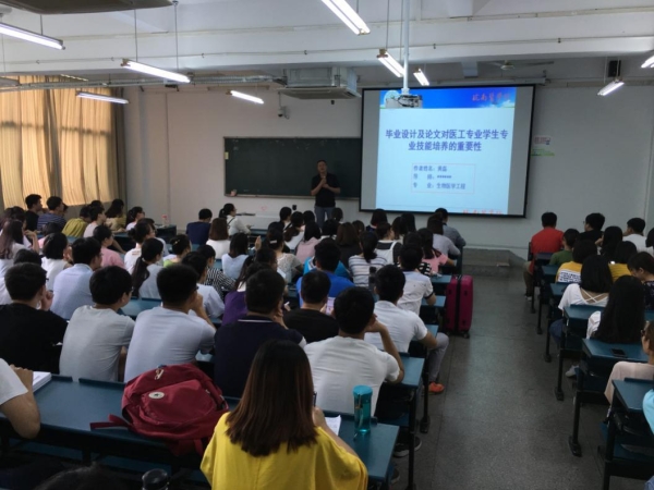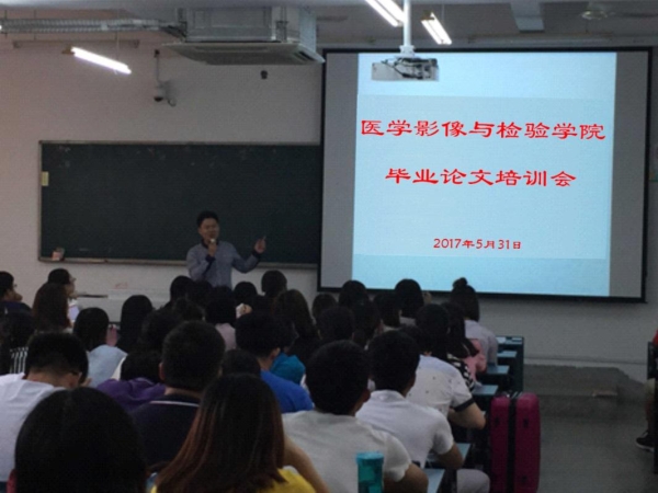 为进一步做好毕业论文指导工作,提高本科生毕业论文(设计)质量,5月31日上午,医学影像与检验公司在东教1104教室召开了毕业论文(设计)培训会。医学工程学教研室主任黄磊和临床检验诊断学教研室老师路勇进行培训讲解,2014级医学检验技术与生物医学工程全体同学参加培训。
