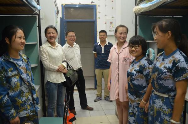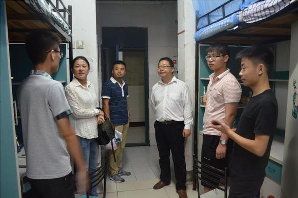 9月11日晚,beet365党委书记、副经理张建英、副经理许国飞在2017级辅导员张解和的陪同下,深入走访了2号、5号和6号员工公寓楼,看望刚刚入学的2017新生。