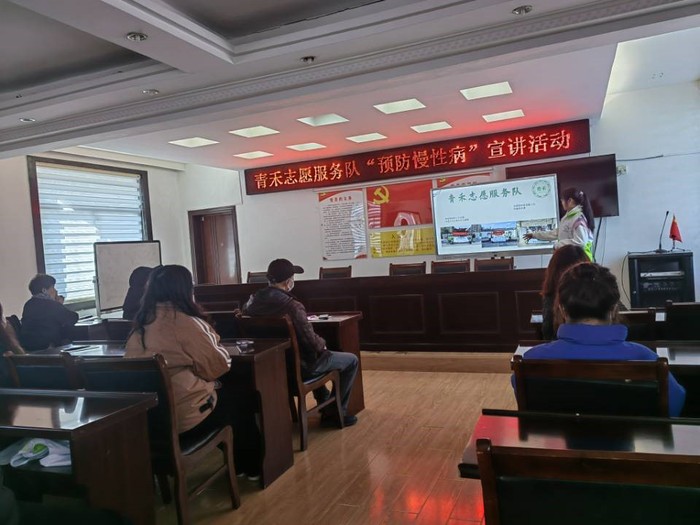 1月7日下午,“青禾”志愿服务队成员在黄山市龙西社区居委会会议室举办了以“预防慢性病”为主题的宣讲活动。宣讲活动分为四个部分,分别是“青禾”志愿服务队介绍、慢性病的基本知识、危害以及如何预防四个专题。宣讲同学建议居民在生活中要注意合理饮食、正常作息、科学运动、戒烟禁酒、纠正不良生活习惯,不断培养健康的生活方式。现场居民认真聆听,积极互动,提出自己在日常生活中出现的各种健康问题,主讲人员进行了解答,参加活动的居民纷纷表示对慢性病有了进一步的认识。