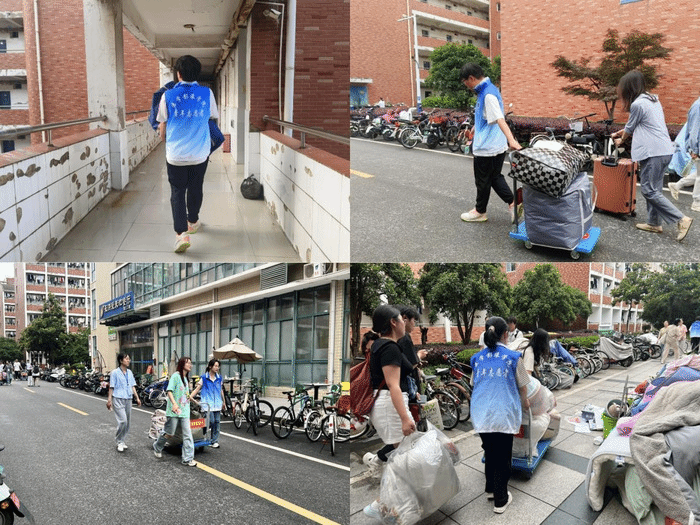 活动当天,志愿者们一早前往负责的宿舍楼,每一个送实习小组都精准对接所负责的实习生,志愿者将行李分类整理,通过小推车、手提、两两合作等方式将行李搬运至指定上车位置。同学们分工明确,相互配合,以饱满的热情和认真的态度顺利完成此次志愿服务,获得高年级学长学姐的一致肯定和赞扬。