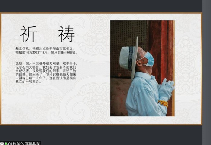 本次活动积极响应国家防疫政策,采用“线下摄影+线上讲演”评选新模式。经过第一轮摄影作品初选,共有13名选手的作品入围第二轮讲演环节。比赛过程中,选手们紧扣比赛主题,对比赛作品进行诠释与解读。他们用饱满的热情、感人至深的故事、铿锵有力的语调,感染着在线上聆听的每一位评委与观众。最终经过激烈的角逐,朱静钰同学荣获一等奖,考思洁、马凌翔同学荣获二等奖,吴世琴、周雨晴、刘清晨同学荣获三等奖。