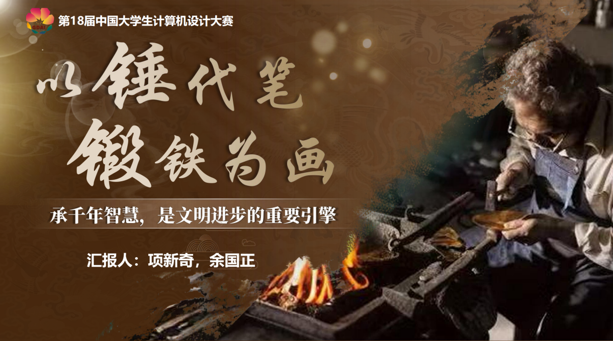 获奖作品《以锤代笔 锻铁为画》由beet365项新奇、滕婕、王嘉怡、章译文、余国正五位同学协作完成,徐晓燕、张昱昊两位老师进行指导。在创作过程中,他们自学编剧、导演、拍摄、剪辑、配音等技术,运用先进的计算机数字手段,将古老的芜湖铁画技艺从诞生历史、制作过程再到技艺传承一一进行呈现。通过细腻的动画设计、精心的镜头语言和丰富的创意表达,作品不仅生动展示了芜湖铁画“以锤代笔,锻铁为画”的独特魅力,还深入挖掘了其背后的历史文化内涵,实现了传统技艺与现代科技的完美融合,为古老技艺的传承与发展开辟了新的路径,也成功将芜湖非遗的魅力绽放在国赛舞台。