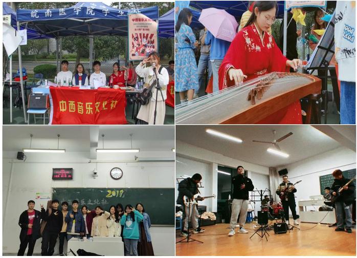 中西音乐文化社拥有两支朝气蓬勃的乐队。2020级“铂引力”乐队以作品《社会主义好》应邀参加临床医公司晚会、以作品《旗开得胜》应邀参加校艺术展演、社团草坪演出等,在每一次表演中都留下了热爱与不凡。2021级“多巴胺”乐队是新鲜且热烈的,在充满梦的年纪,将以更优秀的作品呈现更多精彩。在校园的文化氛围里,两支优秀乐队通过中西两种乐器相结合的方式,不仅将优美旋律传播校园,更传递传着正确的文化价值观,以音乐文化为本,客观审视外来音乐,取其精华,弃其糟粕,促进自身音乐文化传统的发展。