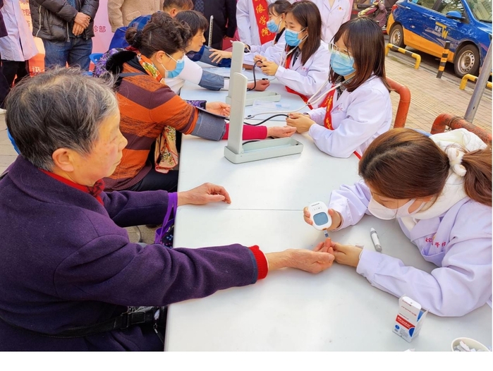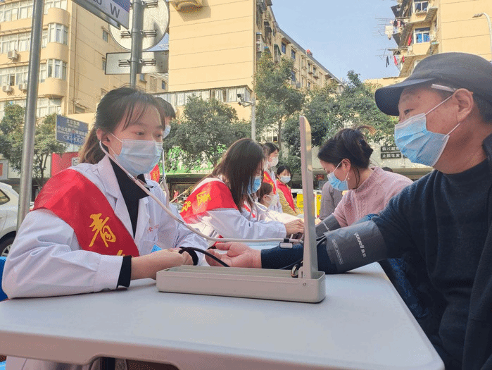 上午9点,支部党员和青年志愿者们携带仪器和相关设备来到殷家山社区开展义诊和健康知识宣传活动。现场,志愿者们尽职尽责为社区居民进行血压、血糖等常规测量,针对每个居民的不同情况,耐心叮嘱他们各种日常生活注意事项,提出合理的膳食、运动等健康生活指导,做到“未病先防”;并且通过发放健康宣传手册和口头讲解等方式,向来往的居民宣传健康常识。当天志愿服务活动共接待群众100余人,受到社区居民的欢迎和好评。