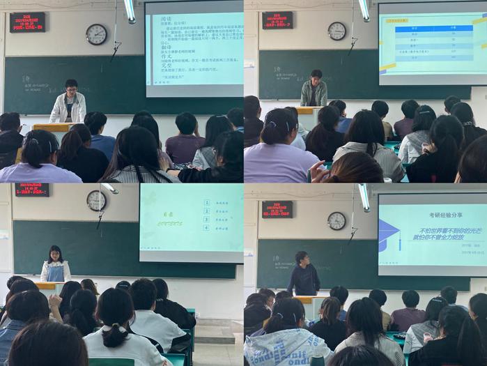 本次交流会分别邀请了2017级辅导员张解和和2017级6位优秀学子进行宣讲。张解和首先对考研宏观趋势以及生物医学工程专业未来职业发展做了简要分析,随后,6位优秀学子围绕参考用书选择、复习计划制定、复习方法、考研调剂、备考心态调整以及相关重要时间节点,结合PPT展示依次进行经验分享,并针对同学们提出的问题进行答疑解惑。全场掌声雷动,同学们纷纷表示,学长学姐们的倾囊相授缓解了现阶段的迷茫和焦虑,面对即将到来的考研,都有了较为清晰的目标,也更加自信、从容。