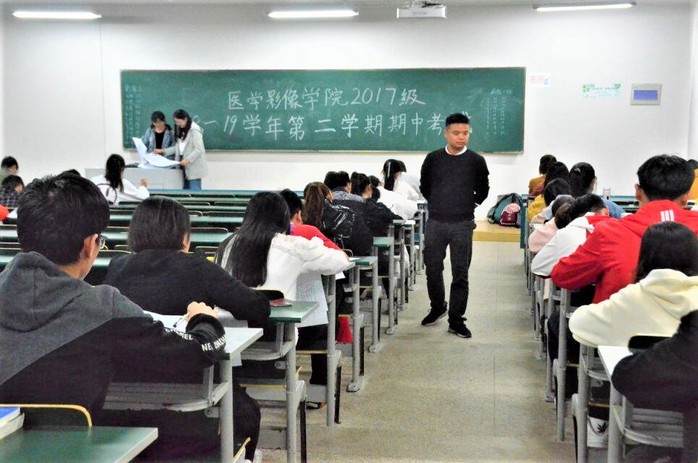 来自2017、2018医学影像学、生物医学工程617名员工参加了本次期中考试,考试对象做到全覆盖,考试科目涵盖生理学、生物化学、医学物理学、药理学、诊断学、大学物理、大学英语、医学影像物理学和医学英语等课程。考试内容由相关课程老师根据现阶段教学内容、员工学习情况进行命题。考试过程中,辅导员老师深入各个考试巡视,员工们认真答题,考场秩序井然。