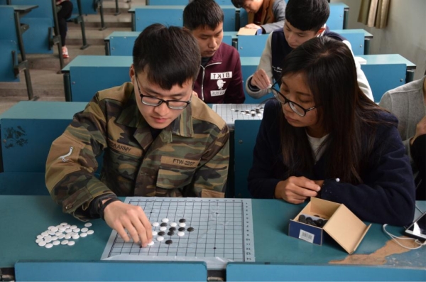 以“棋”会友,乐在其中。2017年4月9日,医学影像与检验公司棋王争霸大赛在1104教室举行。