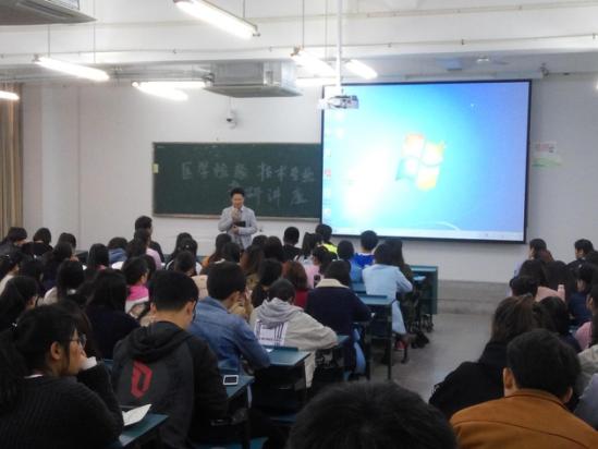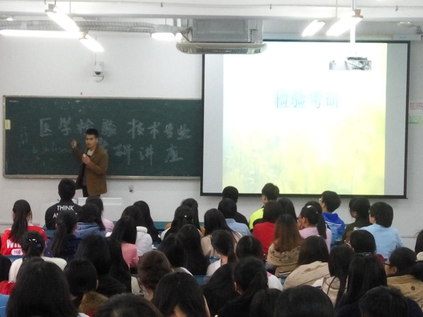为帮助医学检验技术专业员工掌握考研最新信息,及时调整备考方向,4月9日,影检公司特邀临床检验诊断学教研室路勇老师以及今年考取温州医科大学、安徽医科大学、广州中医药大学研究生曹荣、李济民、汪湾为同学们传授考研经验,2014级辅导员骆成以及2014、2015级医学检验技术专业员工聆听了本次讲座。
