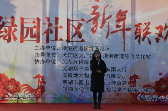 在社区居民一片欢声笑语中,现场洋溢着节日的氛围。影检公司参演节目的同学或歌或舞,赢得阵阵掌声。一曲《极乐净土》用活力十足的舞蹈迎接新年;《大鱼》的空灵歌声似乎将美好古老的故事娓娓道来;《告白气球》熟悉的曲调让现场观众轻轻跟唱,气氛十分热烈。