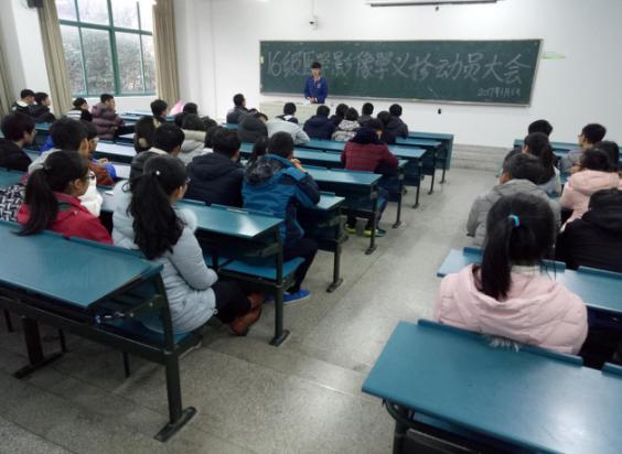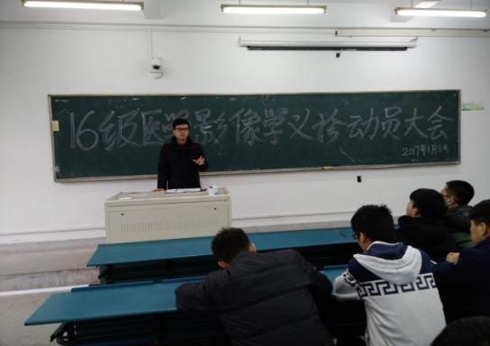 2017年1月8日下午,影检公司在1102教室召开2016级医学影像学专业义诊动员大会,会议由2016级辅导员周超主持,参加义诊的同学全部到会。周老师向同学们介绍义诊的重要性及意义,并强调在义诊中要注意安全以及言行举止。随后,由2015级员工代表详细介绍义诊活动的进行流程和注意事项。