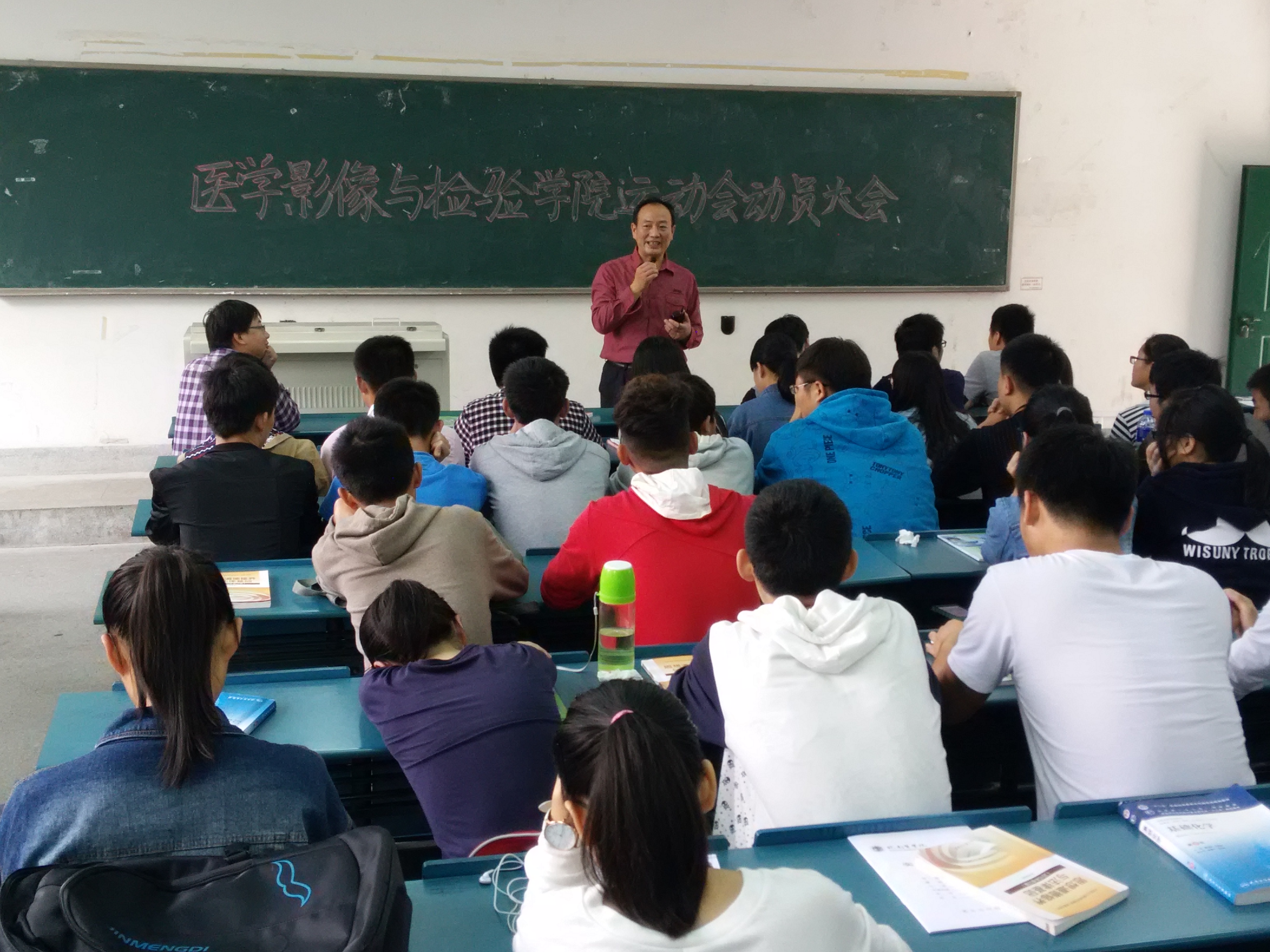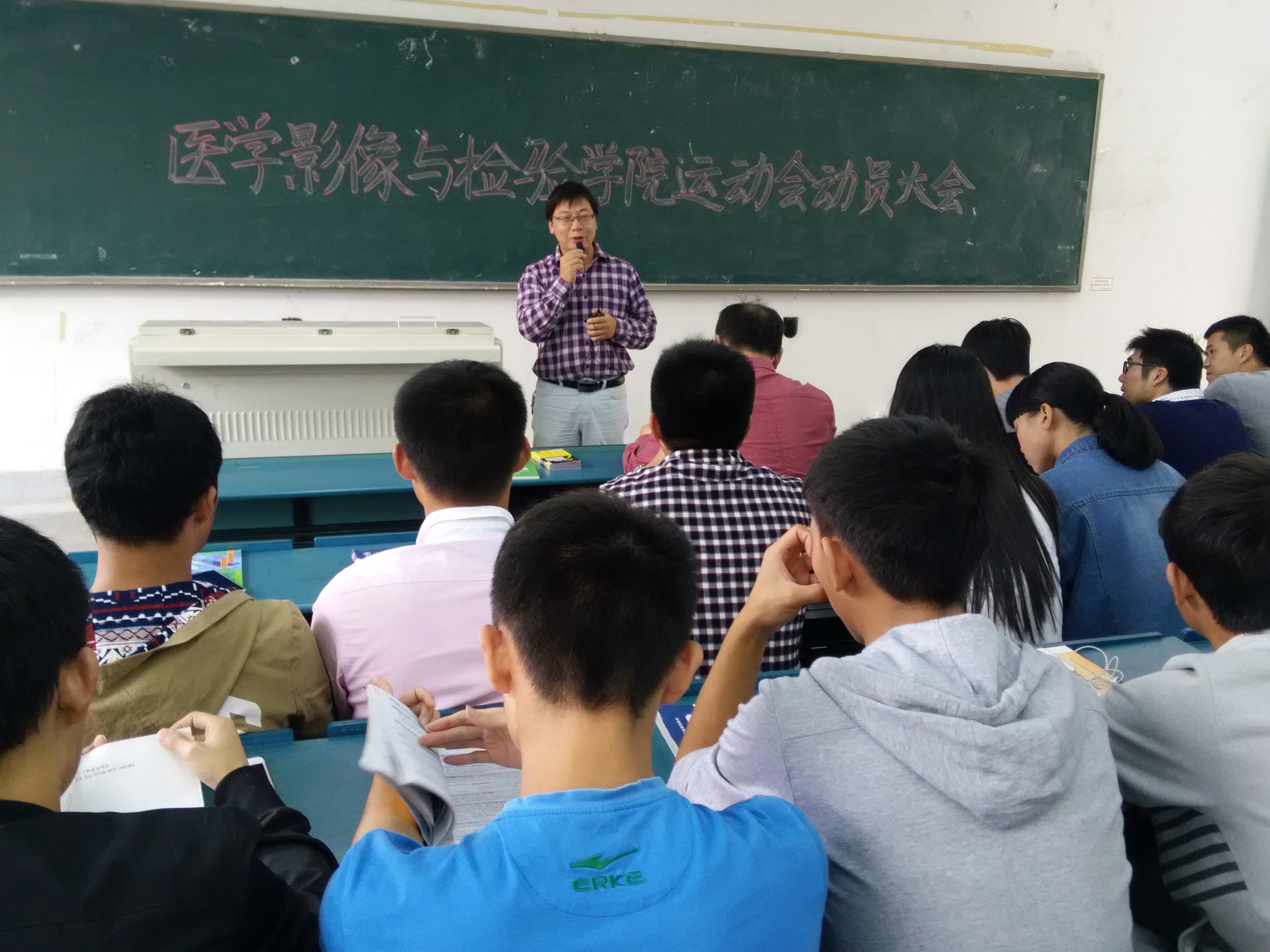 为更好的备战校第36届运动会,鼓舞运动员赛前志气,医学影像与检验公司于2015年10月22日在东教104举行运动会动员大会。此次动员大会由2011级辅导员孙开慧主持,副经理许国飞,2014级辅导员骆成,2015级辅导员王康淇、周超出席此次会议。