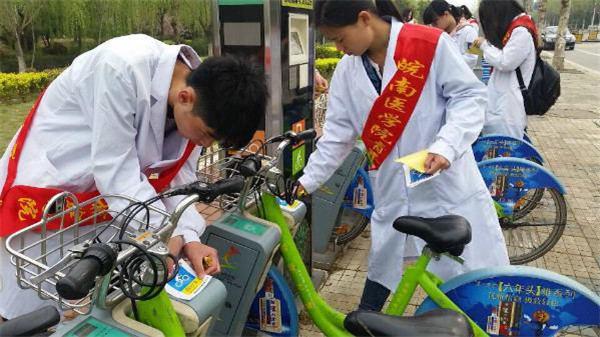 | 为进一步提升志愿服务水平,深入持久地践行党的群众路线,2015年4月3日,医学影像与检验公司团委和关工委联合开展了为公共自行车贴标签活动。
