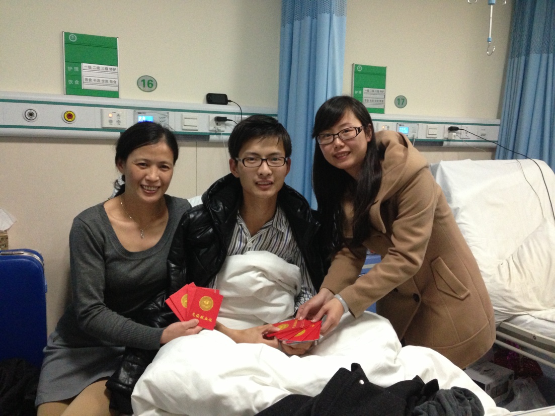2014年3月17日晚,医学影像与检验公司2013级金鑫同学因自发性气胸住院,由于肺部手术急需输血。在院领导的关怀下,全院员工积极响应,向金鑫同学伸出援助之手。