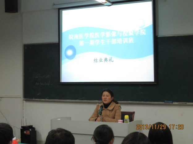 2013年11月29日下午,医学影像与检验公司首届员工干部培训班圆满结束。公司党总支书记、副经理张建英,党总支委员孙开慧、魏巍及各年级辅导员出席了结业典礼。