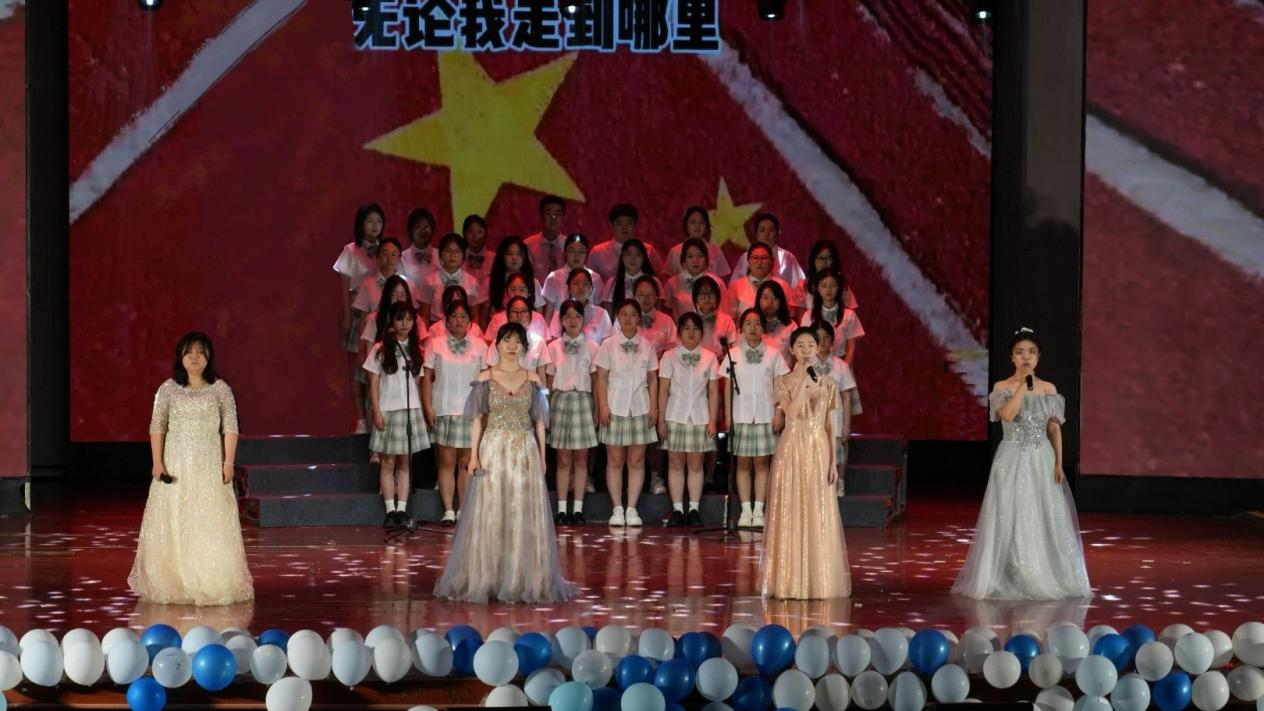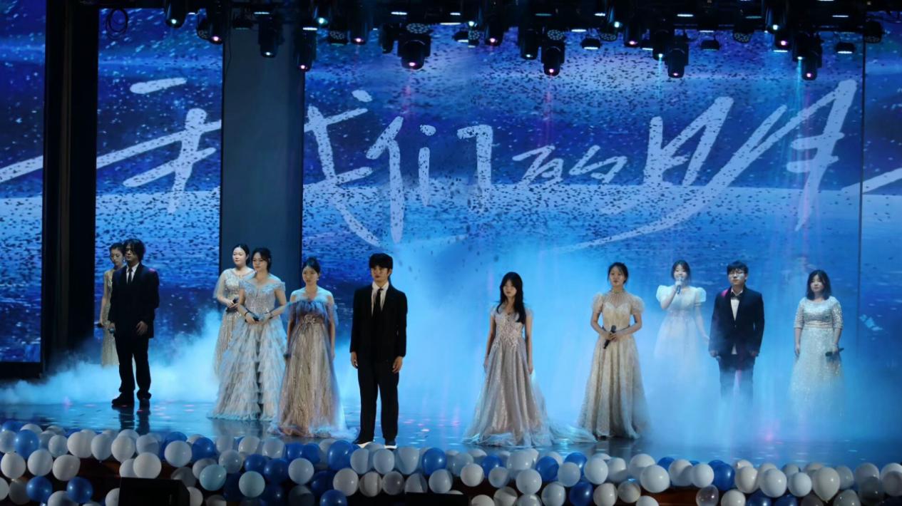 “向·明日荣光”,点燃逐梦之火,《diamond girls》用活力四射舞姿,诠释青春的无限可能;《醉墨离歌》以流行编曲展示中华传统文化,用音乐架起古今的桥梁;在《黑白光影里的青春独白》铿锵的朗诵声中,饱含了我们对每一位毕业生的未来最真诚的祝福。在温情献花环节,毕业生代表向毕业班辅导员和教师代表分别献上鲜花,将莘莘学子对母校的眷恋、对师长的感恩化作深深鞠躬,将晚会推向高潮。尾声《文昌西路的日子》唤起校园地标记忆,最后《我和我的祖国》旋律响起,全场挥舞的荧光棒汇成星海,在合唱声中将青春理想融入家国情怀,毕业生们将携梦出发,奔赴明日荣光。