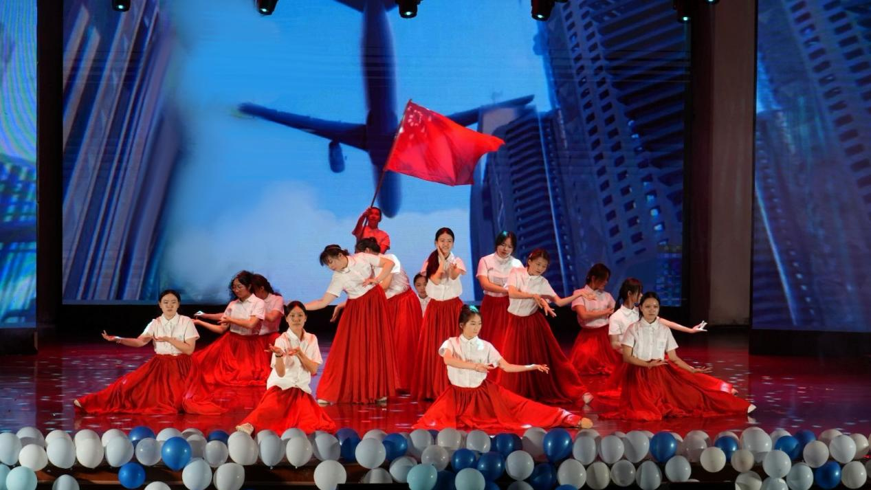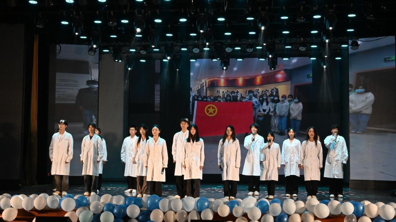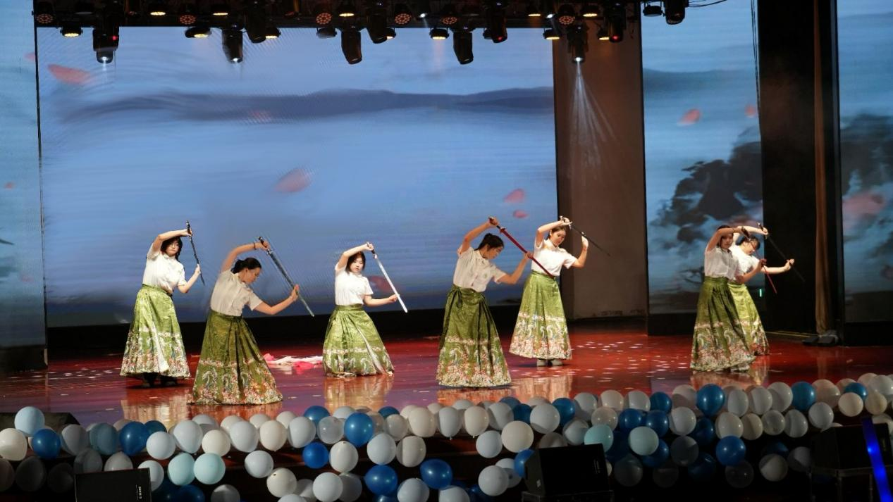 文艺汇演开篇“忆·初见韶光”,以激情洋溢的舞蹈点燃舞台,动感节奏里,跃动着初入校园的懵懂与热忱;《我们的明天》旋律轻扬,勾起同窗间初次相遇的青涩记忆;《木兰》以飒爽的剑舞,诠释医员工如木兰般“朔气传金柝,寒光照铁衣”的勇敢无畏;《青案春歌》悠悠响起,飘扬华服与翩跹舞步的交织里,中华传统之美的画卷徐徐展开。