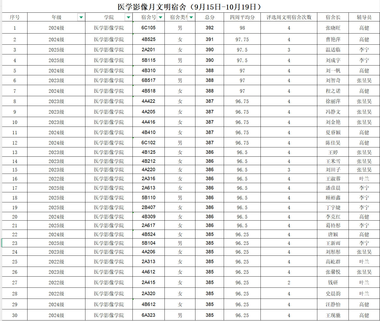 据《beet365官方网站“安全文明宿舍”评选办法 (修订)》和《beet365文明宿舍评选实施细则》文件要求及评选标准,共评选30间“月文明宿舍”,现进行公示。