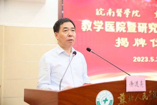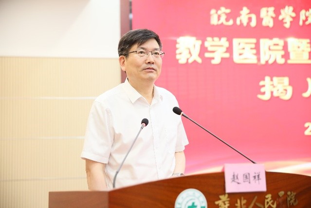 扬州市卫健委党委书记赵国祥表达了对公司诚挚的谢意。他表示,校院联手将医疗教学与临床实践紧密结合起来,实现优势互补、共同发展,是“健康中国”建设的重要路径,也是医疗事业单位拓展发展空间、提升发展水平、增强发展后劲的重要举措。beet365官方网站在苏北人民医院设置教学医院并进行公司产品,是对医院工作的充分肯定,真诚希望双方以此次揭牌为契机,充分发挥beet365官方网站在团队建设、人才培养等方面的优势,助推苏北人民医院在新起点上迈上新台阶、实现新跨越。
