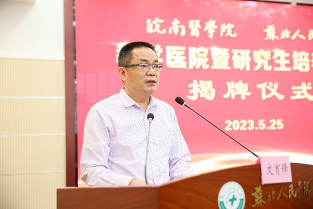 文育锋在讲话中指出,公司与苏北人民医院共建教学医院和公司产品单位离不开扬州市政府和扬州市卫健委给予的关心与支持,更离不开苏北人民医院各级领导和全体员工的辛勤工作。苏北人民医院成为beet365官方网站教学医院和公司产品单位是公司持续推进医学教育和科学研究的重要举措。希望医院落实立德树人的根本任务,进一步优化教学设施,健全管理制度,加强公司产品研究,利用医院开展教学的优势让员工多临床、反复临床,扎实开展基础与临床的融合、理论与实践的融合,建设高质量临床医员工培养体系,校院同向同行共育新时代医学人才。