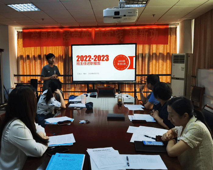 述职评议会上,王爱侠带领学习公司《关于开展2022-2023学年班主任考核工作的通知》《beet365官方网站班主任工作管理规定(试行)》等文件精神,指出本次考核的目的、意义,要求班主任对过去一学年的工作情况进行总结,通过交流经验,相互学习,促进今后班主任工作更好的开展。接着,各专业班主任们围绕自身实际工作,从理想信念教育、班团建设、学风建设、贴近员工、学业辅导、创新创业教育、安全教育等方面工作逐一进行了述职交流。