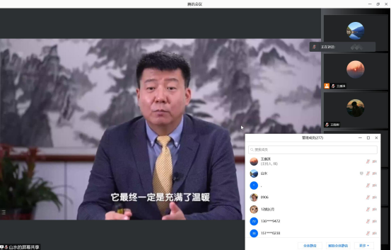 9月23日晚,公司副经理江峰在腾讯会议平台为公司2021级全体新生推送北京大学医学人文公司副经理王岳教授的讲课视频,通过视频学习,同学们更坚定医务工作者这份职业崇高、神圣,在今后工作中要多换位思考。江峰最后总结:和谐医患关系非常重要,是一个永恒的话题:需要我们不断努力改进,做到让别人感动、让病人温暖。