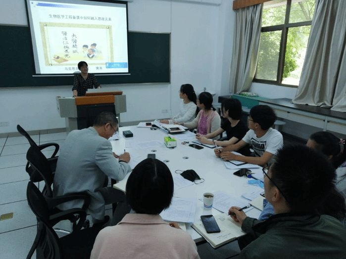 为了加强师德师风建设,引导教师自觉将思政教育融入专业课程教学,强化思想政治理论教育和价值引领,发挥哲学社会科学的育人功能。5月12日上午,beet365医学工程学教研室在三号实验楼3104展开了“思政融合专业课程教学”的线下集体备课,此次集体备课邀请了马克思主义公司的黄英老师来到现场给予点评与指导。