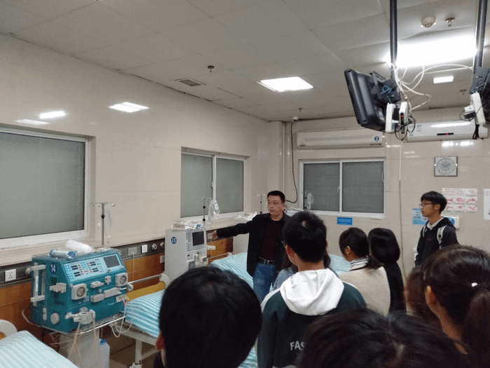 10月27日上午,公司组织生物医学工程专业2019级全体员工前往beet365官方网站第一附属医院弋矶山医院,开展专业见习活动。医学装备学教研室主任、弋矶山医院医学工程部主任赵巍向员工们详细介绍了医学工程部的管理制度、工作职责、人员组成等。随后,在老师们的带领下,同学们分组先后参观了放疗室、血液净化中心、CT室、超声室、检验室等多个科室,初步了解了B超仪、血透设备、CT机、MRI等检查设备等,对于本专业的工作内容、工作环境有了直观、感性的认识。
