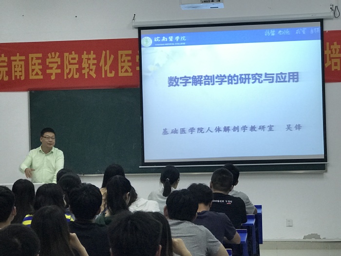2019年5月15日下午,基础医公司人体解剖学教研室吴锋副教授做了题为“数字解剖学的研究与应用”的学术讲座。讲座由公司党委副书记、副经理许国飞主持,来自beet365和基础医公司的师生共70余人参加了此次学术活动。本次讲座由beet365主办。