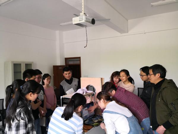 活动伊始,在实验室内展示了项目---影像医疗设备原理展示与仿真操作教学仪器,由一名该项目的员工负责人在教师的指导下进行项目初期成果的演示,并向其他员工进行介绍。紧接着,其他员工对此项目提出了一些问题及看法,现场讨论气氛热烈。最后由黄磊老师对该项目进行总结,他阐述了老员工创新创业项目标书的撰写和科研框架的构建,运用思维导图的新手段深入简出的介绍科研思路的建立、可行性分析及具体实施方法等内容,总结出科研方法提高的途径有创新与知识积累、逆向思维和学科交叉法等。