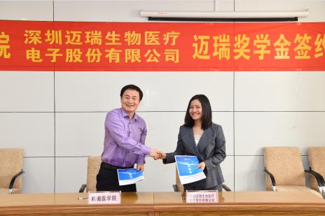 随后双方共同签订了“迈瑞奖学金”合作协议书,会议全体人员合影留念!
