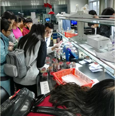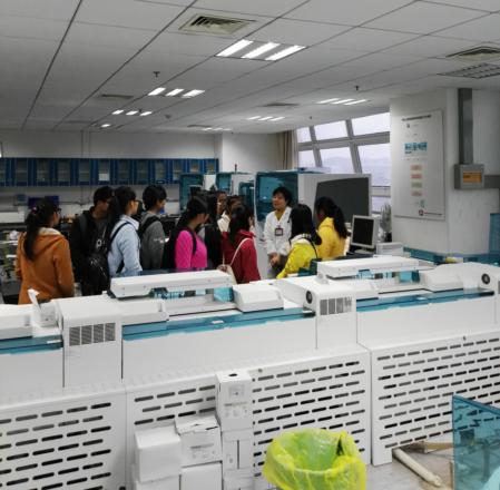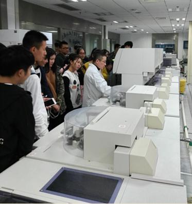 会后,李小宁主任、柳发虎主任、方芳组长和陶青松组长分别带领员工参观了微生物室、临检室、免疫室及生化室。柳发虎就检验科工作的整体流程进行了细致的讲解、说明;李小宁、方芳、陶青松带领同学们分别参观了各科室的全自动分析流水线,对标本的前处理、自动分类、自动检测等流程进行了详细讲解,并简要说明了各类分析仪的工作原理和操作过程;最后,李小宁劝诫员工:“虽然现在检验自动化程度比较高,但不能丢掉传统形态学检验方法,依然要认真努力学好专业基本技能”。