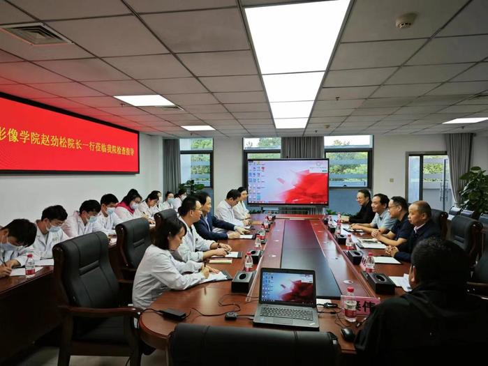 在安庆市立医院,检查组还对医学影像学专业教学班的教学情况进行了检查。院方从教学组织架构、教学实施现状、教学管理工作及特色亮点等方面进行了详细介绍。赵劲松感谢医院在“3+2”教学班教学模式中的付出与投入,以及在培养主体的协同性、课程设置的层次性、培养策略的多样性、实践教学的丰富性等方面的积极创新,并与医院副经理朱娟就教学、科研、执业医师考试等议题展开了务实交流。