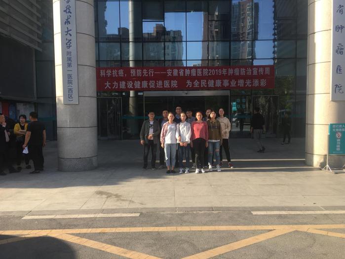 为进一步了解实习同学工作、生活情况,加强实习员工管理工作。根据公司工作安排,2019年3月底-4月初,beet365生产实习秘书张解和、2015级医学影像学专业辅导员王康淇先后走访了苏北人民医院、安徽医科大学第二附属医院、安徽省肿瘤医院、安徽省立医院、合肥市第二人民医院、中国人民解放军联勤保障部队第901医院、安徽中医药大学第一附属医院,看望在这7家医院实习的50多名员工。