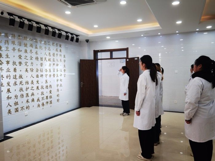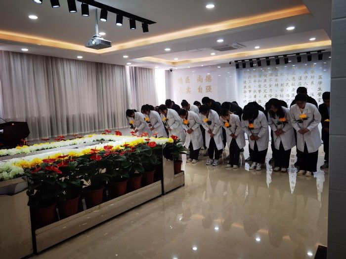在公司遗体捐献缅怀室,师生列队整齐,沉静哀思,向无言良师鞠躬、献花,表达了对“大体老师”们最崇高的敬意。面向医员工誓言,现场医员工们高举右拳,庄严道出坚定不忘初心,救死扶伤的医员工誓言,同学们纷纷表示定将不负“健康所系、性命相托”的医学誓言,不负遗体及器官捐献者们生前的期望与嘱托,敬佑生命、勤学苦练,以实际行动展示仁心仁术,为医药卫生事业的发展贡献青春力量。
