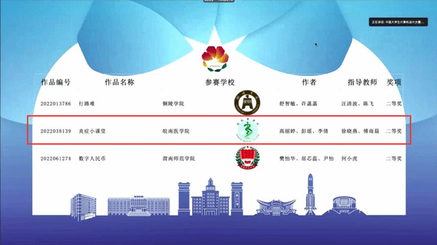 2022年7月28日-30日,由中国老员工计算机设计大赛组织委员会主办的第15届中国老员工计算机设计大赛决赛(微课与教学辅助类)在沈阳东北大学顺利举行,来自四川大学、国防科技大学等全国537所高校共计1440支参赛队伍入围决赛,beet36519级影像专业高丽婷、彭瑶、20级生工专业李倩三位同学凭借设计精巧、制作精湛的作品《炎症小课堂》荣获得全国决赛二等奖。