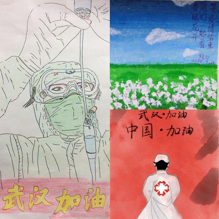 本次活动集中展示了39件员工党员抒发抗疫信心的文艺作品,形式主要有书画、短视频、PPT等。部分党员用画笔生动形象地描绘了抗击疫情一线的医务人员,表达了对这些美丽的“逆行者”夜以继日救治病患的钦佩之情。作品还抒发了疫情结束后医务人员和家人团聚,一起欣赏春暖花开的美好希冀。